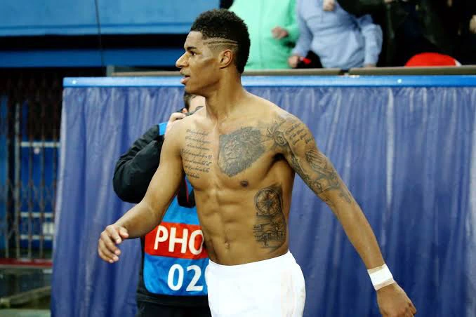 The right side of Marcus Rashford chest is covered in tattooed writings, we are yet to know what was written their.